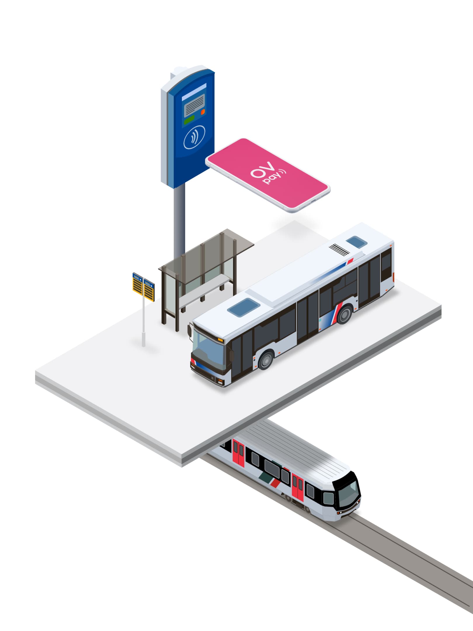 OVpay is a new way to pay for public transport in the Netherlands. It allows you to check in and out with your contactless debit card, credit card, or mobile phone. You don't need to have an OV-chipkaart or a subscription.