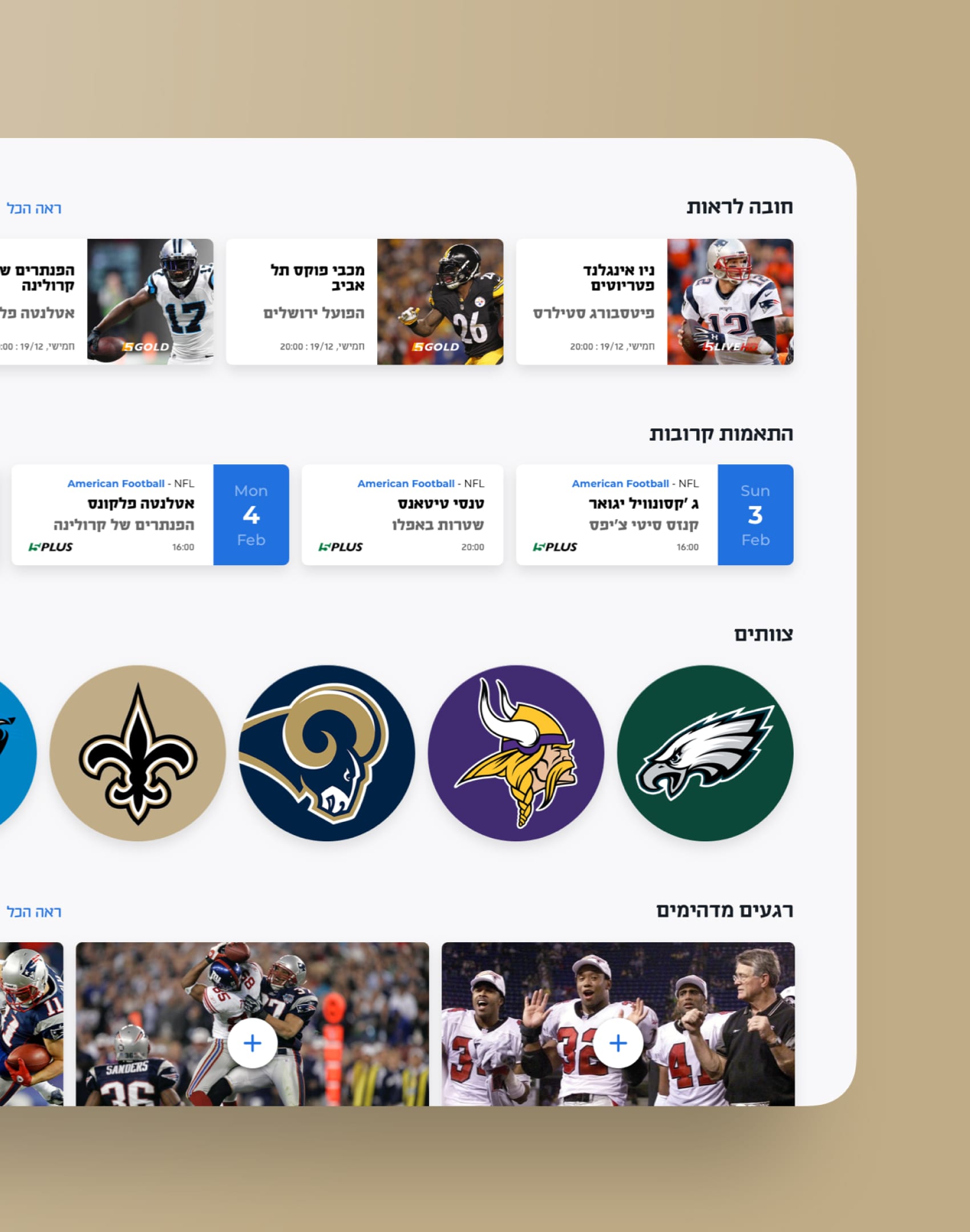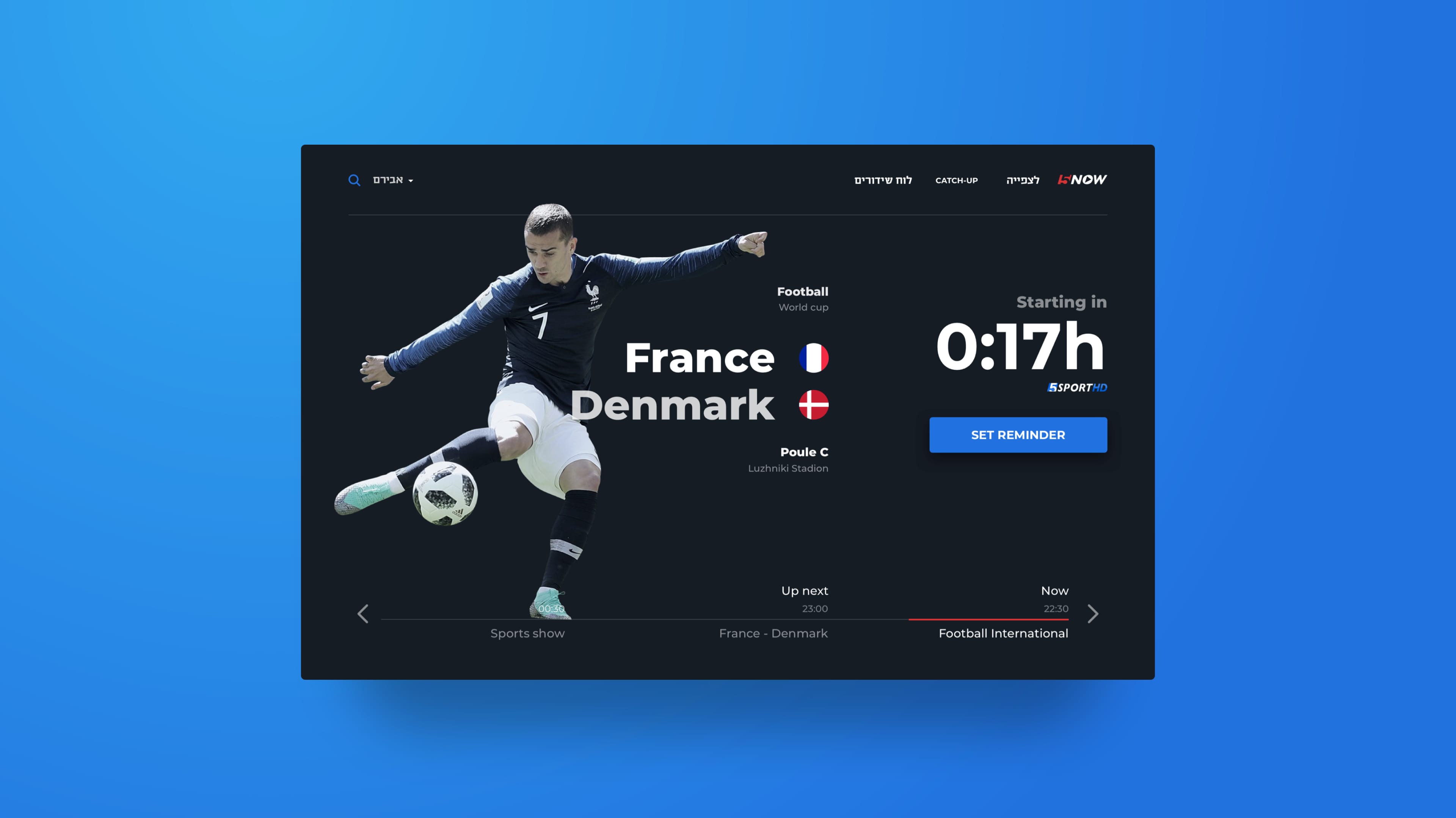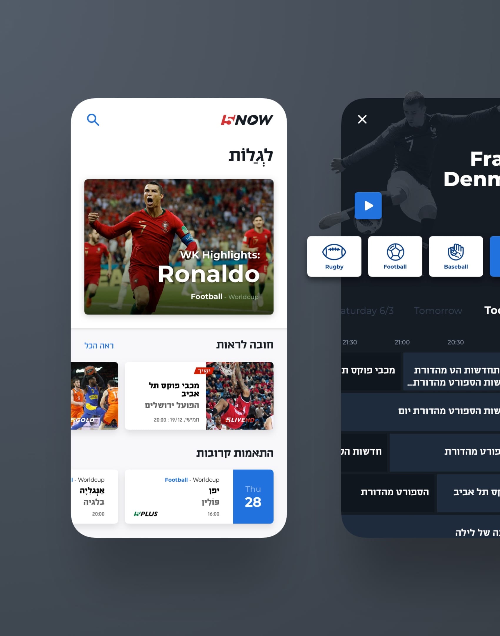 Working closely with the R.G.E. team, we then proceeded in delivering optimised interfaces for Smart TV, responsive web, smartphone and tablet apps through which users can re-watch all their favourite games, tune into spoiler-free live matches and follow Israels most popular Sport related shows.