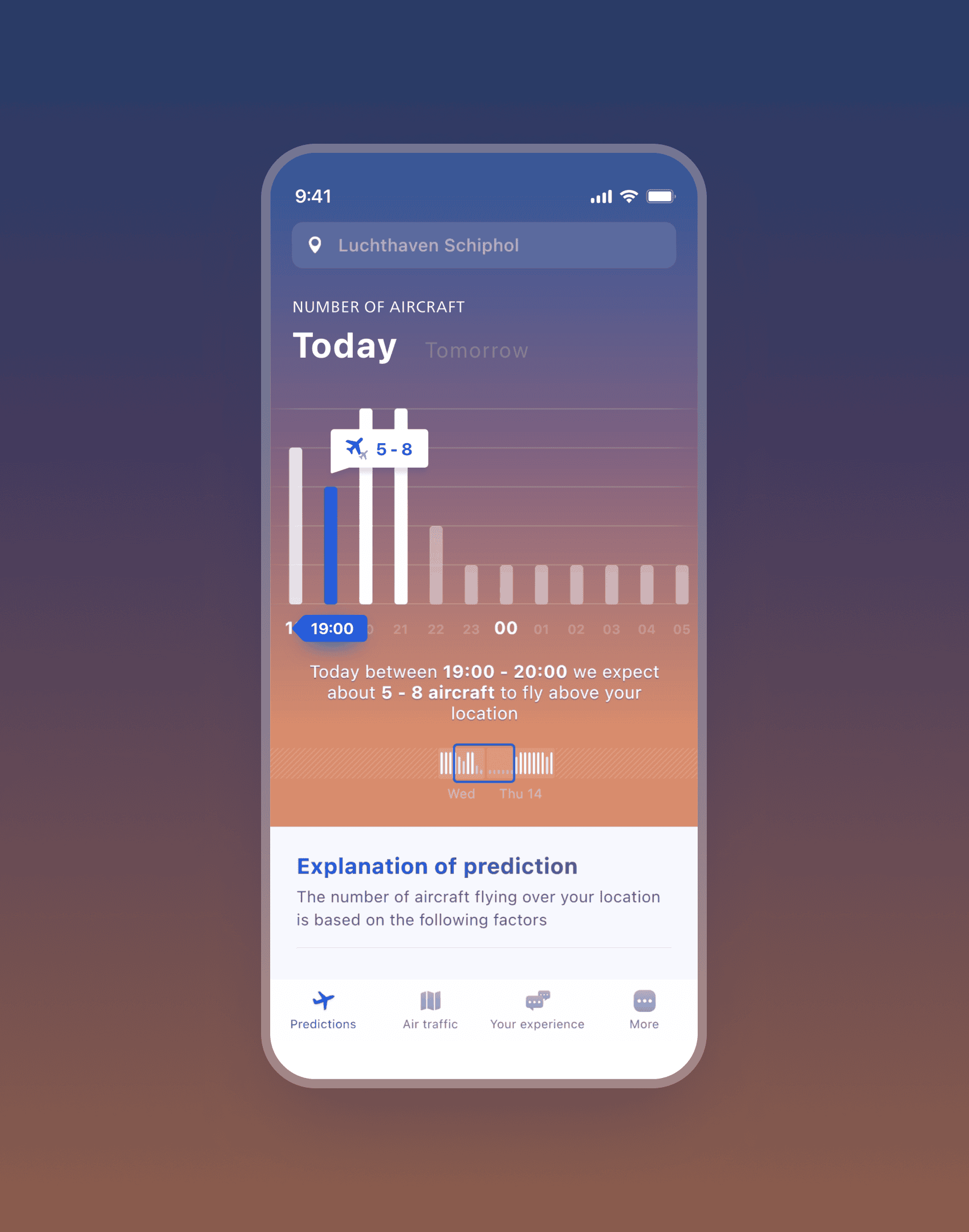 Notifly delivers real-time and predictive insights on air traffic movements to those living near Schiphol Airport. By offering hourly forecasts up to 24 hours in advance, alongside live tracking of air traffic and runway usage, the app empowers residents with the information they need to plan their days. Notifications alert users to expected increases in air traffic, helping them anticipate and adjust to changes due to weather fluctuations or runway maintenance.