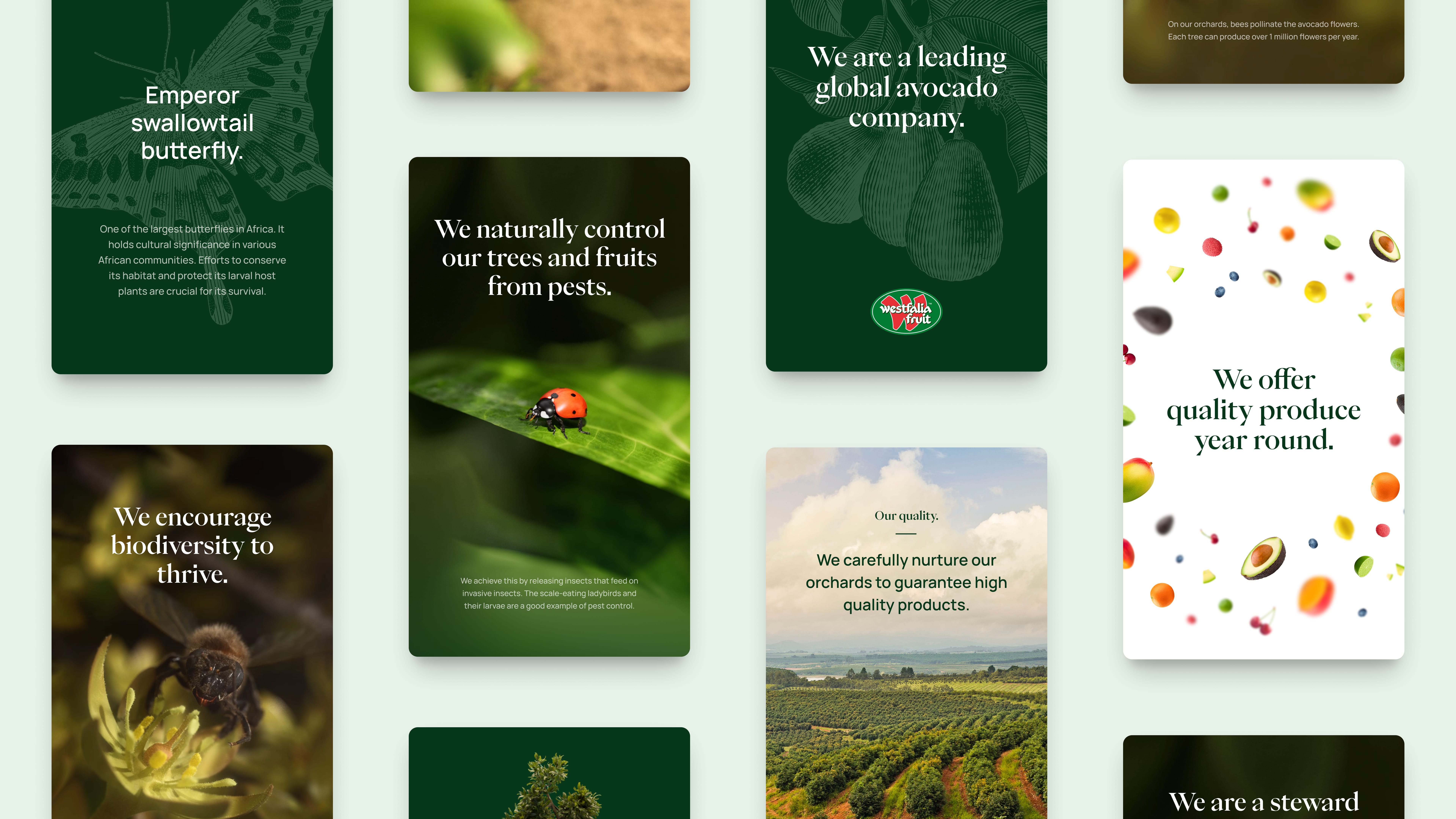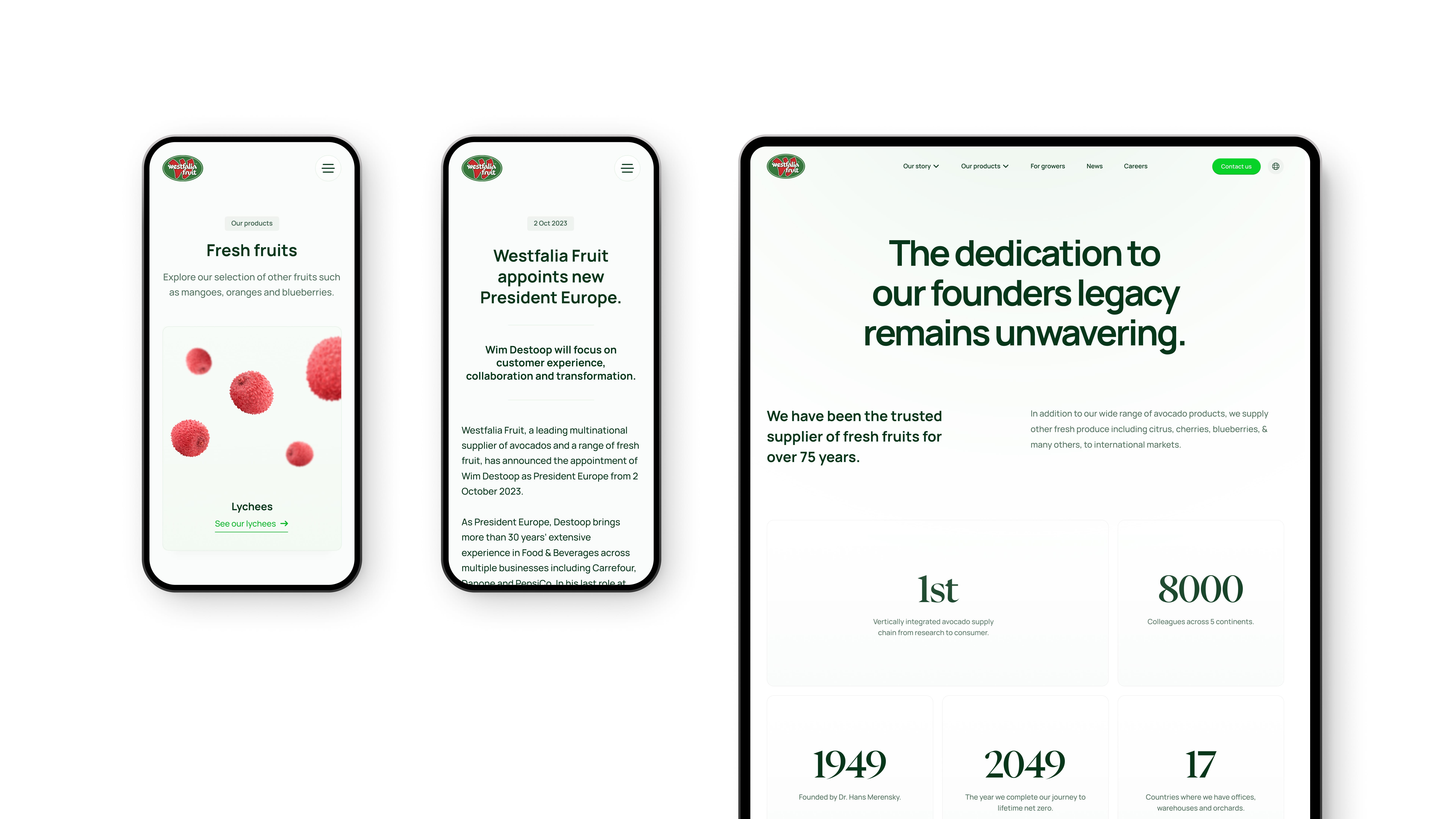 By creating a visual identity that truly fits Westfalia Fruit's values, beliefs, and achievements first, we were able to create a harmonious relationship between the brand narrative and the website. The results are an enhanced visual identity and corporate website which truly reflect the essence that has shaped Westfalia Fruit for over 75 years.