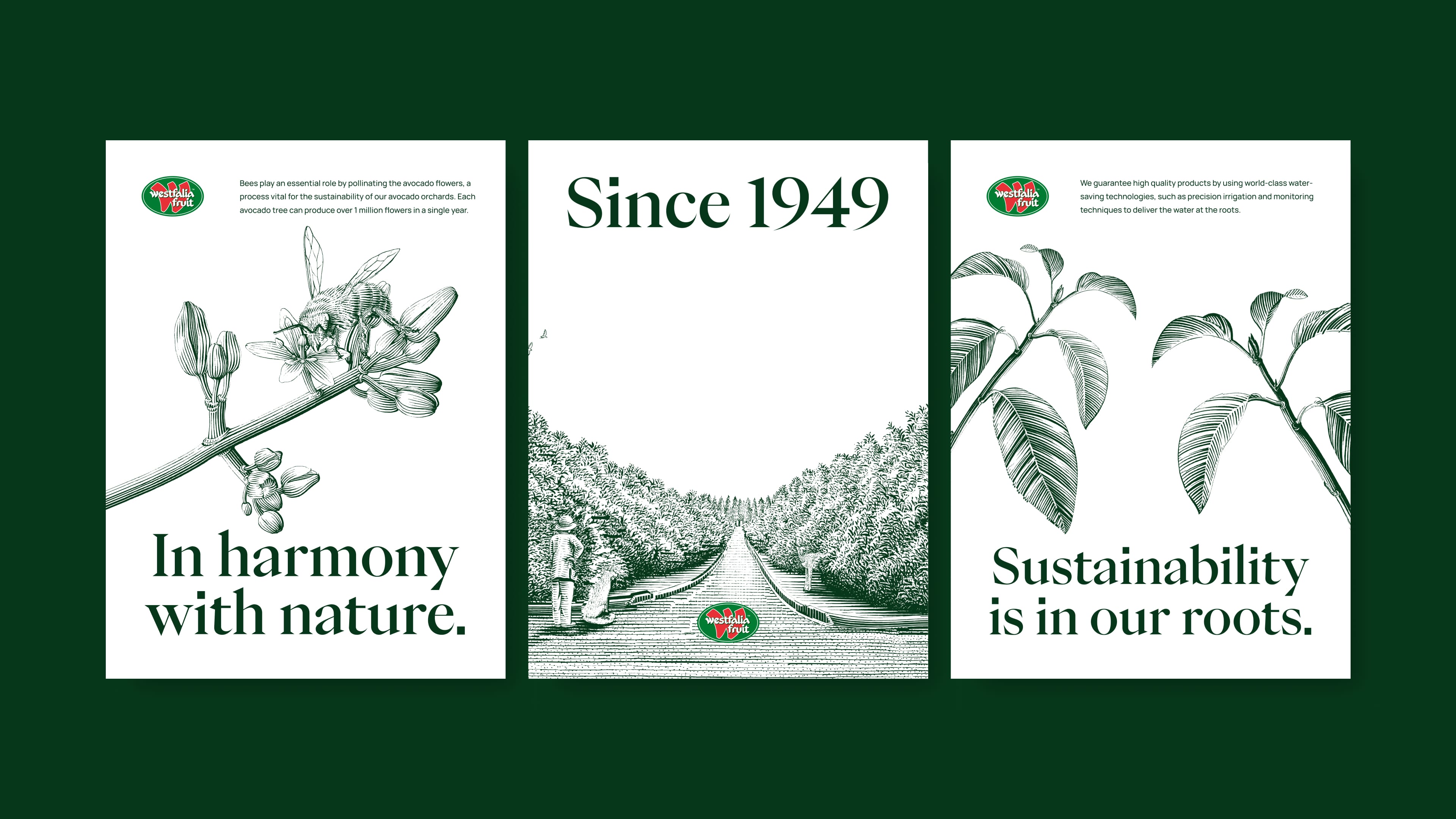 The new typography is a mature, distinctive font which strongly reflects the heritage and leadership position of the brand. It is paired with an approachable, modern font that is better suited for longer texts. The colour scheme was refined to create a more cohesive set which is better suited for screens. Custom illustrations were created in an encyclopaedic style to honour the brand's heritage and focus on quality. The portfolio is presented with high-quality imagery of products presented as if floating in the air, adding a playful twist to the website. Bringing all these brand assets together, allows Westfalia Fruit to confidently express its values and beliefs, helping them resonate better with their audiences.