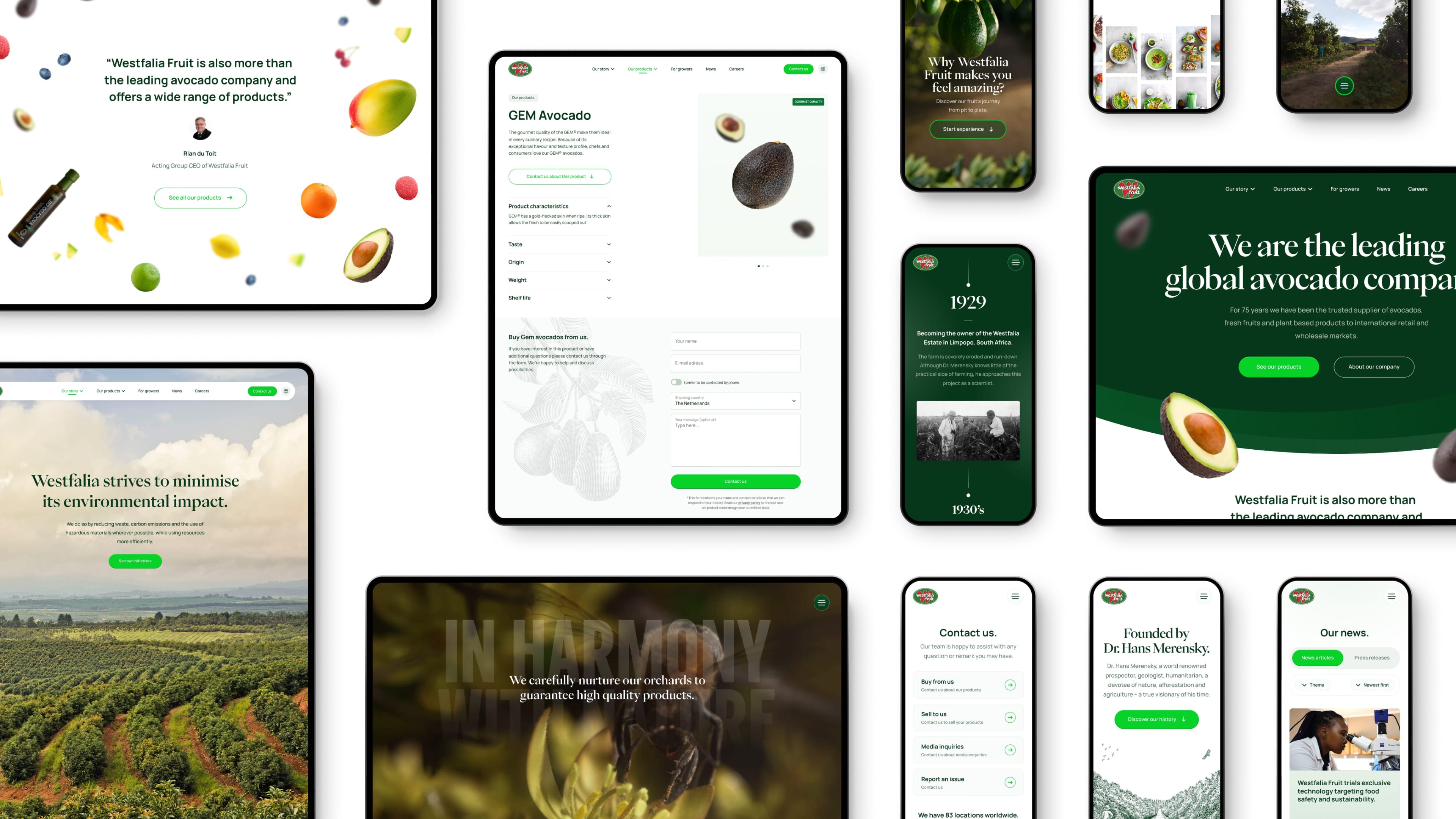 Since 1949, Westfalia Fruit has become one of the leading global avocado companies by offering high-quality produce to international retail, foodservice, and wholesale customers. They selected us a a partner to greatly improve their user experience and shaping a stronger brand identity for their new corporate website.