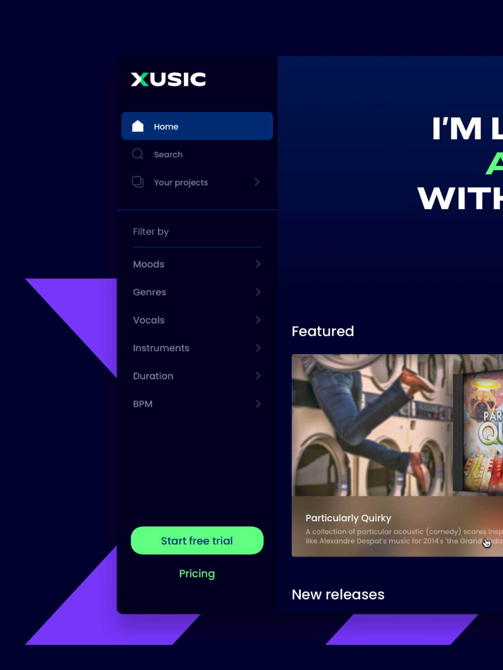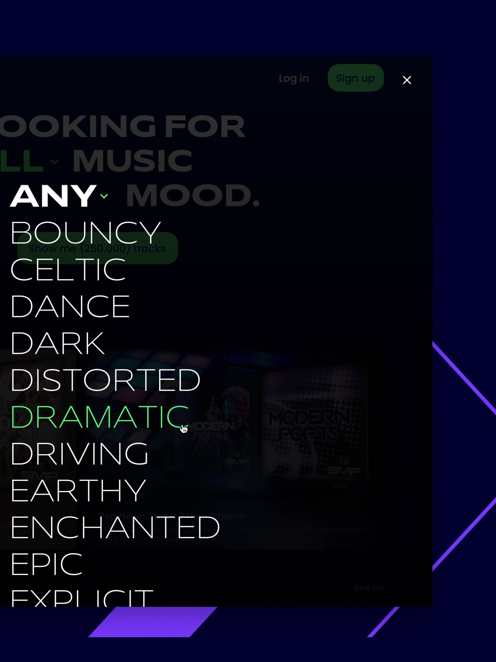 After listening in and examining the competition, we analysed the biggest gaps and created a user-friendly way to find the right track. Simply describe what you're looking for, and the system will use filters like instruments, mood, vocals, and tempo to find matching tracks.