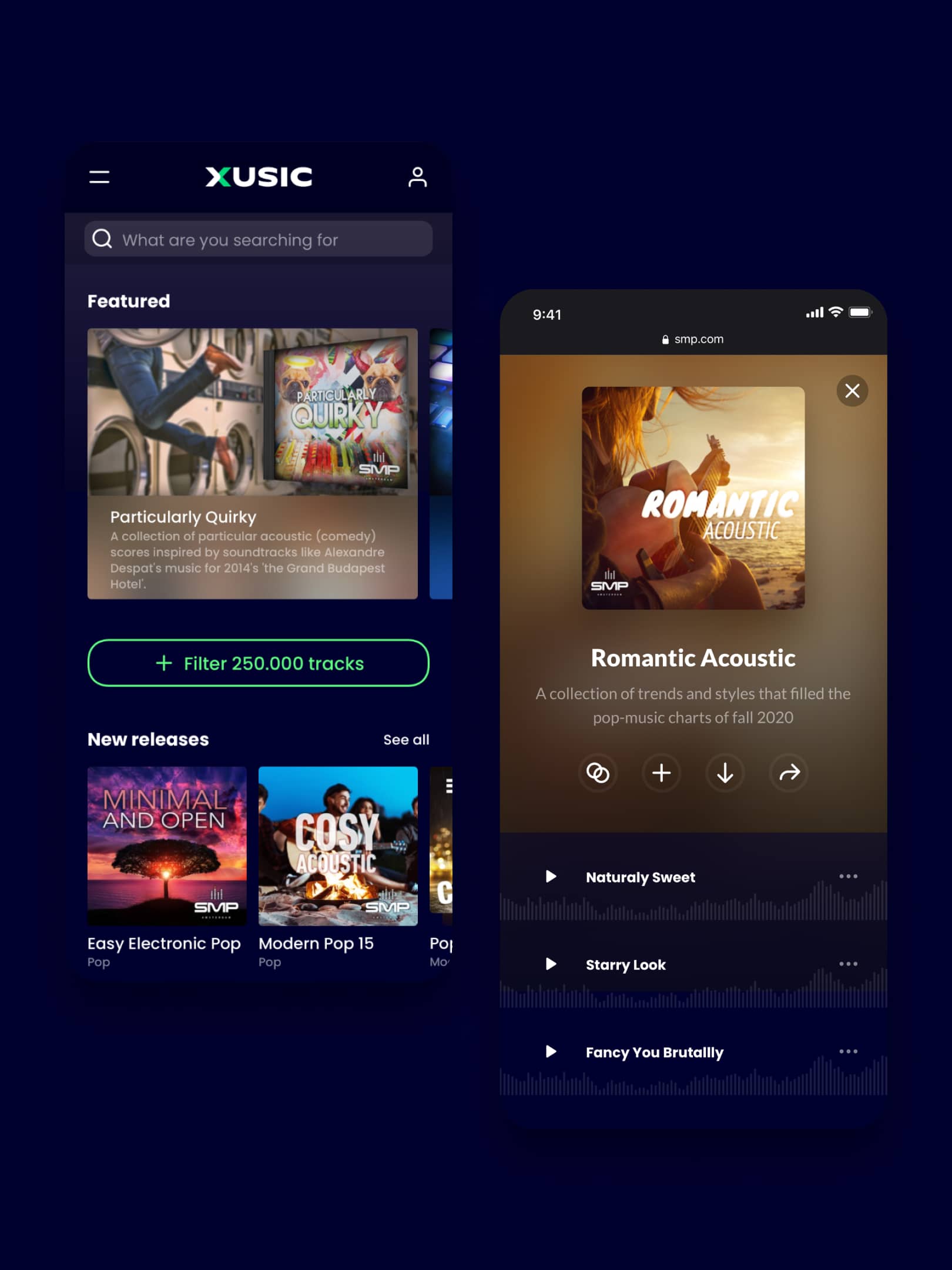 SMP has been creating music for media since 1995 and have built a huge library of ready-to-use tracks. While SMP themselves are primarily focused on B2C licensing, they asked us to create a platform on which smaller creators could easily license tracks to use on social media content.